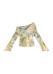 • We looked to the heavens and found our favorite vintage illustrated mythological constellation maps. Printed on soft midweight modal jersey and featuring a draped neckline that can be styled asymmetric or off-shoulder. Lightly flared long sleeves and a close fit through the body for the most flattering fit.