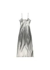 • This incredible metallic silver catches the perfect amount of light. A full-length slip dress designed to be semi sheer but comes with a separate lining for when you feel like more coverage. Adjustable spaghetti straps that can be tied however you want at the back.