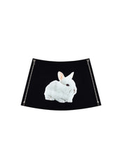 A low-rise mini skirt in cotton twill with the fluffiest placement screen print. Featuring double ended exposed metal zips on both sides.