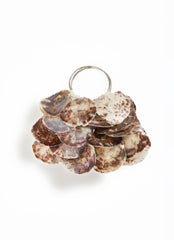 Handmade runway sample, with each real shells hand-sewn onto a canvas base. Purse is lined with an open top. Please note this is a sample with some unfinished internal raw edge seams.