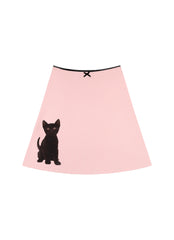 I'm not kitten around! This A-line skirt is designed to sit on the hip and hit perfectly at the knee. Cut in a soft midweight modal jersey with a placement screen print and detailed with a scalloped elastic waistband.