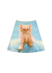 I'm not kitten around! This A-line skirt is designed to sit on the hip and hit perfectly at the knee. Cut in a soft midweight modal jersey with a full bleed digital print and detailed with a scalloped elastic waistband.
